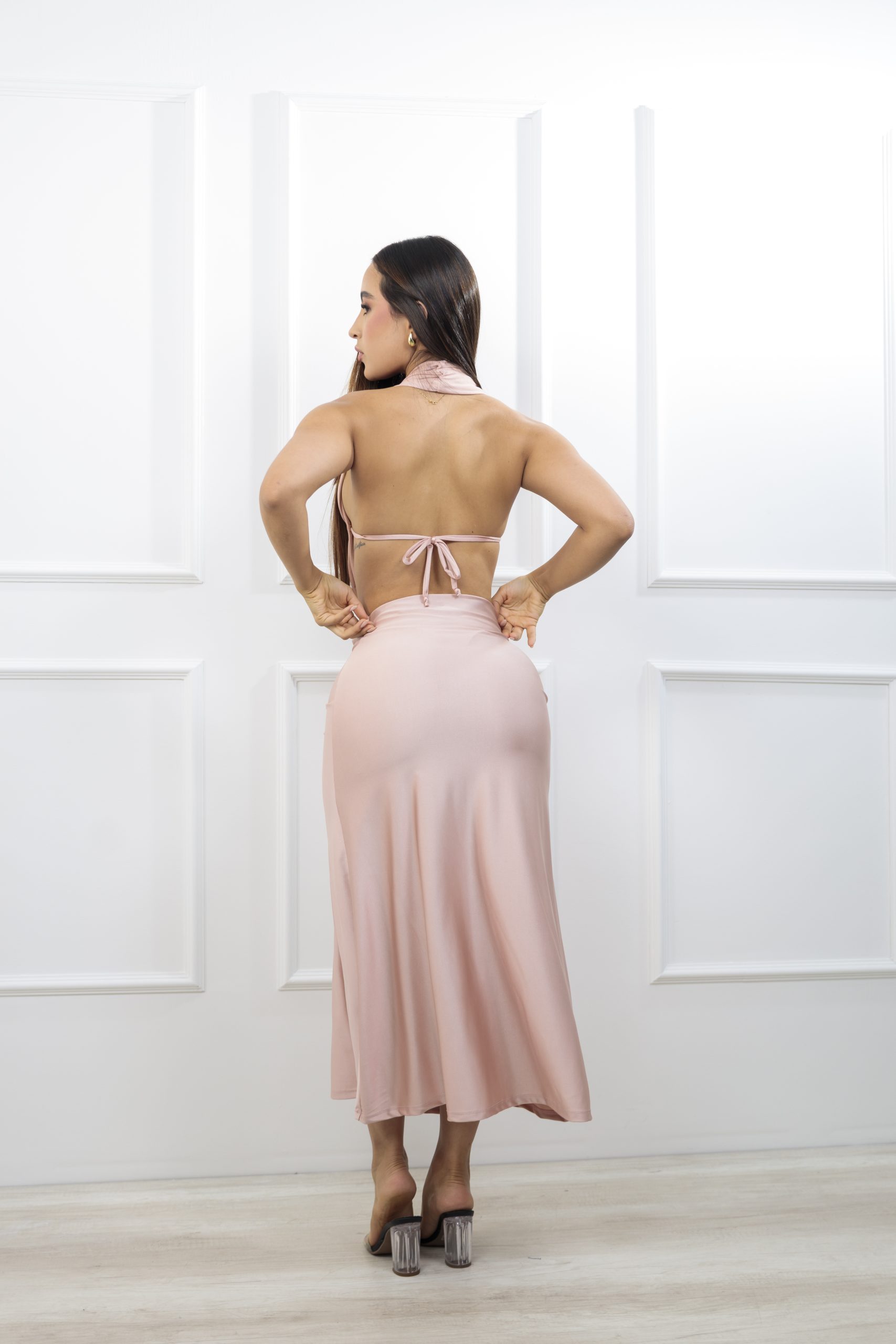Falda femenina tipo midi con diseño ajustado en la parte superior y caída fluida que estiliza la silueta. Ideal para looks elegantes, casuales o de noche.